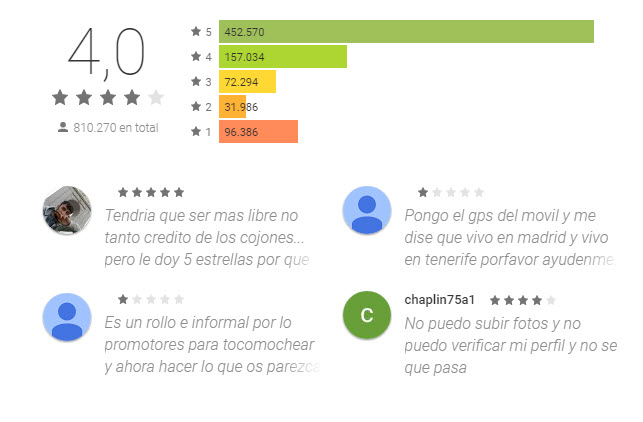 Actualmente en el Google Store Lovoo tiene una valoración total de 4 sobre 5, una de las más altas, pero voy a poner algunas de las opiniones de Lovoo de clientes reales, buenas y malas:
